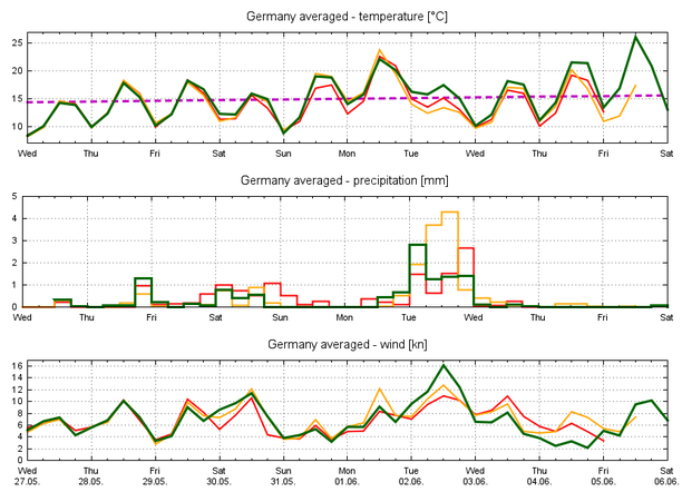 die Mittel- und Langfristprognosen der führenden Wettermodelle birgen noch ziemlich große Unsicherheiten, ob aus den langersehnten sommerlichen Temperaturen womöglich wieder eine Eintagsfliege wird. Zwar ist die Wahrscheinlichkeit mittlerweile recht hoch, dass pünktlich zum meteorologischen Sommerbeginn am 1. Juni, also kommenden Montag, das Quecksilber in vielen Teilen des Landes auf Werte über 25 Grad steigen würde, der Dienstag aber bereits wieder deutlich kühler ausfallen könnte. Wie schon so oft in diesem Jahr könnte nach einem raschen Temperaturanstieg ein ebenso schneller Temperaturrückgang erfolgen, und ein Tag mit sommerlichen Temperaturwerten macht noch keinen Sommer aus.