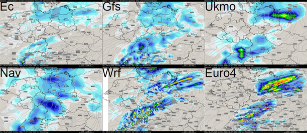 Solche Gewittersysteme mit hoher Dynamik sind dabei zum einen räumlich oft sehr begrenzt, und/oder kann man sie nur sehr zeitnah vorhersagen. Dies beginnt bereits bei der Zugbahn des oben erwähnten Randtiefs. Dementsprechend gilt es für die Meteorologen unserer Unwetterzentrale im Vorfeld vor allem darauf zu achten, wo sich denn all die Zutaten am besten "überlappen" und wo dementsprechend das Unwetterpotenzial am größten ist.